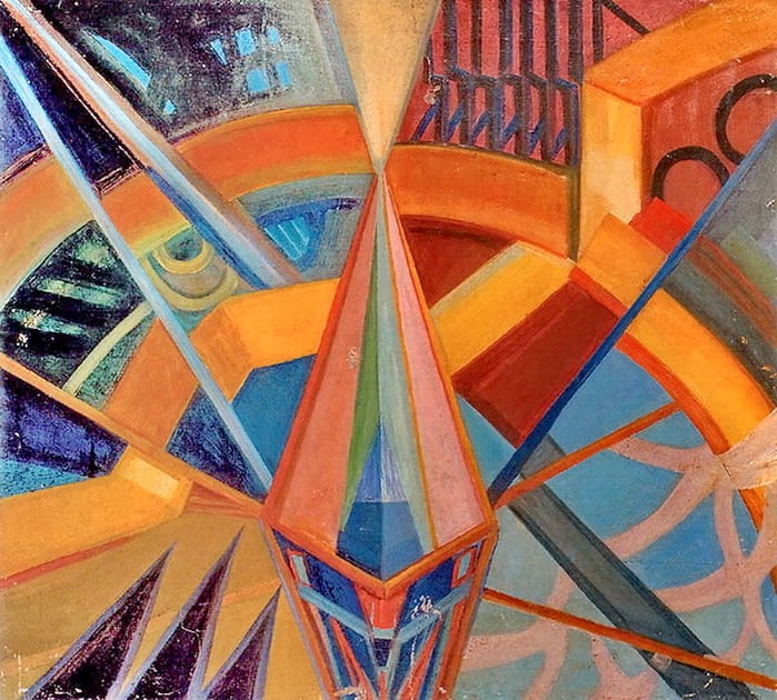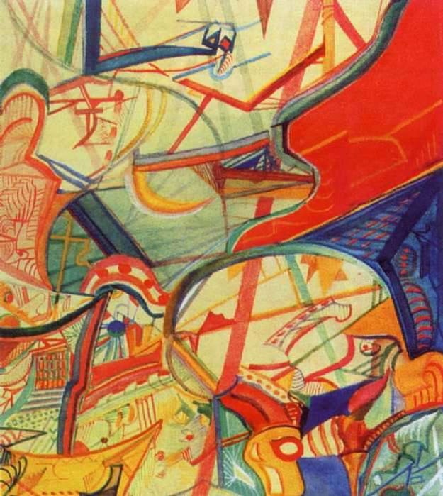 «Беспредметность (Кристаллизация в пространстве)», 1915-1917 годы, холст, масло, 71,5 х 80 см., Национальная галерея Республики Коми, Сыктывкар. «Цвето-музыкальная конструкция», 1918 год, дерево, масло, 51 х 63 см., Государственный музей современного искусства, Салоники. Коллекция Георгия Костаки.