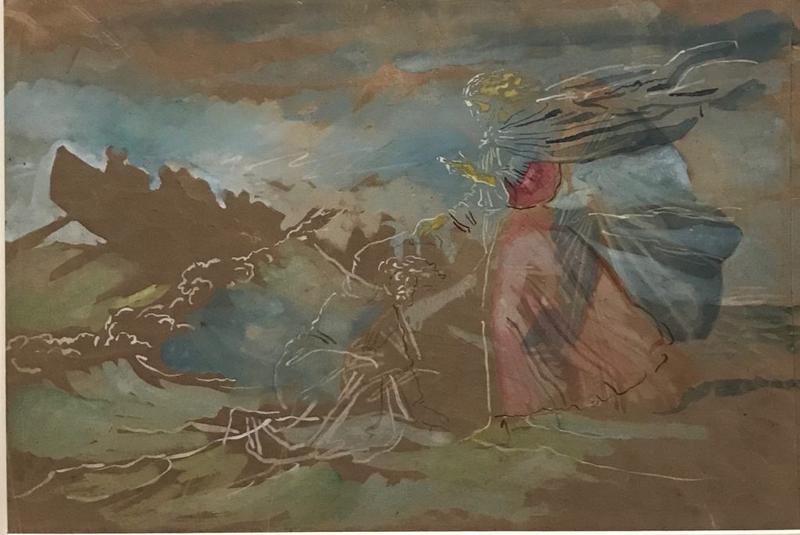 Иллюстрация к стихотворению "Дедушка Мазай и зайцы" Н.А.Некрасова (тушь, белила; 1908)