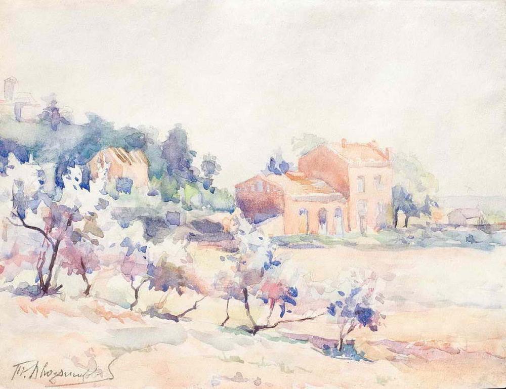 «Околица». 1910-е годы, Бумага, акварель, 20 х 27, Донецкий художественный музей