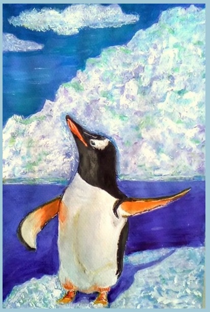 Пингвин. Многократно улучшенный, особенно айсберг)) Гуашьи чуть-чуть акварели, А4. .