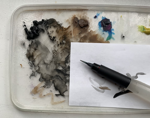 вот так это выглядит, просто если налить краску внутрь - ее же приходится выжимать на рисунок, капать - а это оказалось совсем неудобно, по-моему, я тушь разведенную заливала, но неважно - процесс плохо контролируемый, а так можно и из кювет писать, я из тюбика выдавила для минимизации рабочего пространства, мне около компа не развернуться полноценно с акварелью