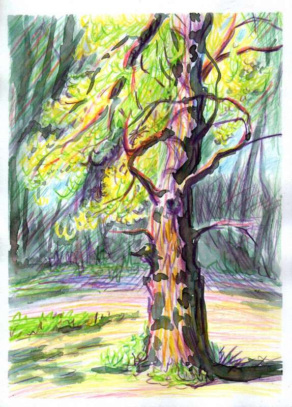 . Рисунок по уроку, проба нарисовать дерево в скетчевой манере. Планирую нарисовать подобным способом деревья на пленере.