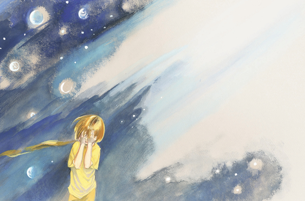 «Маленький принц»*Цветная бумага, гуашь, 2005 год* «Итак, я во все глаза смотрел на это необычайное явление. Не забудьте, я находился за тысячи миль от человеческого жилья. А между тем ничуть не похоже было, чтобы этот малыш заблудился, или до смерти устал и напуган, или умирает от голода и жажды. По его виду никак нельзя было сказать, что это ребенок, потерявшийся в необитаемой пустыне, вдалеке от всякого жилья. Наконец ко мне вернулся дар речи, и я спросил: — Но... что ты здесь делаешь? И он опять попросил тихо и очень серьёзно: — Пожалуйста... нарисуй барашка…»