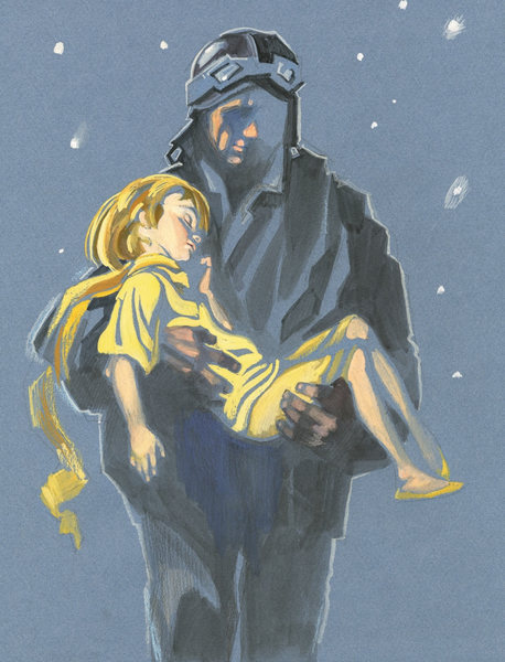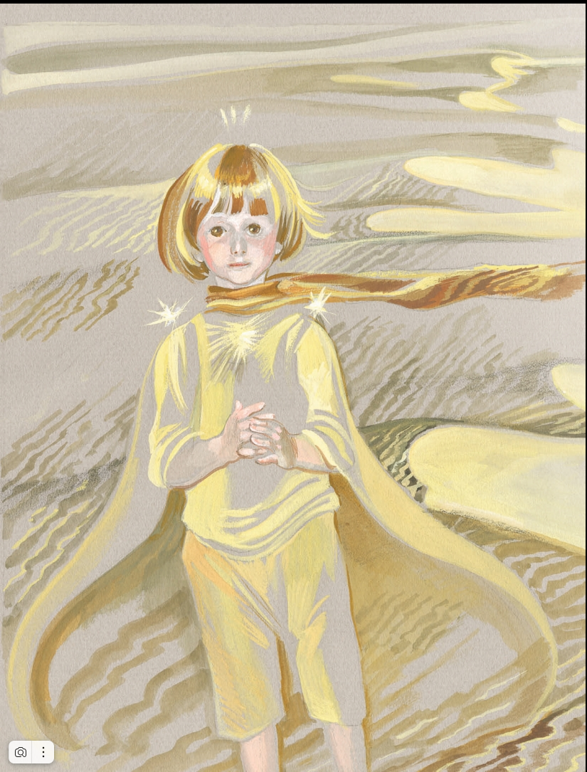 «Потом он уснул, я взял его на руки и пошел дальше. Я был взволнован. Мне казалось — я несу хрупкое сокровище. Мне казалось даже, что ничего более хрупкого нет на нашей Земле. При свете луны я смотрел на его бледный лоб, на сомкнутые ресницы, на золотые пряди волос, которые перебирал ветер, и говорил себе: все это лишь оболочка. Самое главное — то, чего не увидишь глазами…»