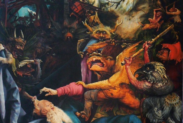 Но кошмар выходит и там и сям. Мы не можем без божественного, мы существуем как люди только в его свете. Но мы не можем и без грязного, ужасного - мы в нем рождаемся, живем и умираем.Имхо, св. Антоний слишком близко подошел к свету проявив насилие над самим собой и это грозит ему гибелью, а все остальное, что заявилось к нему - заявилось спасти его от смерти.