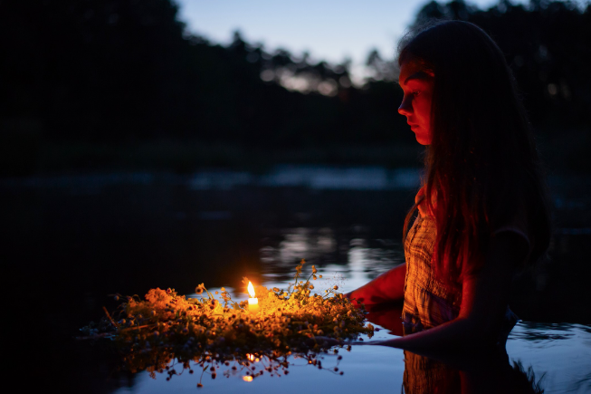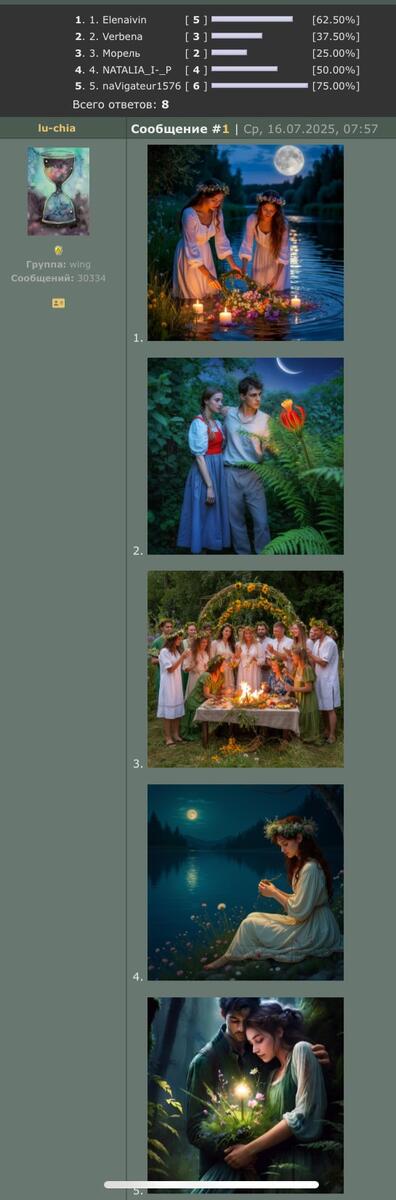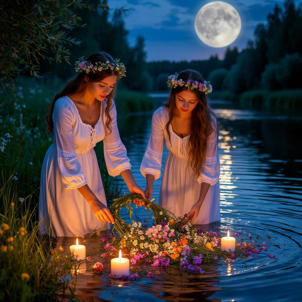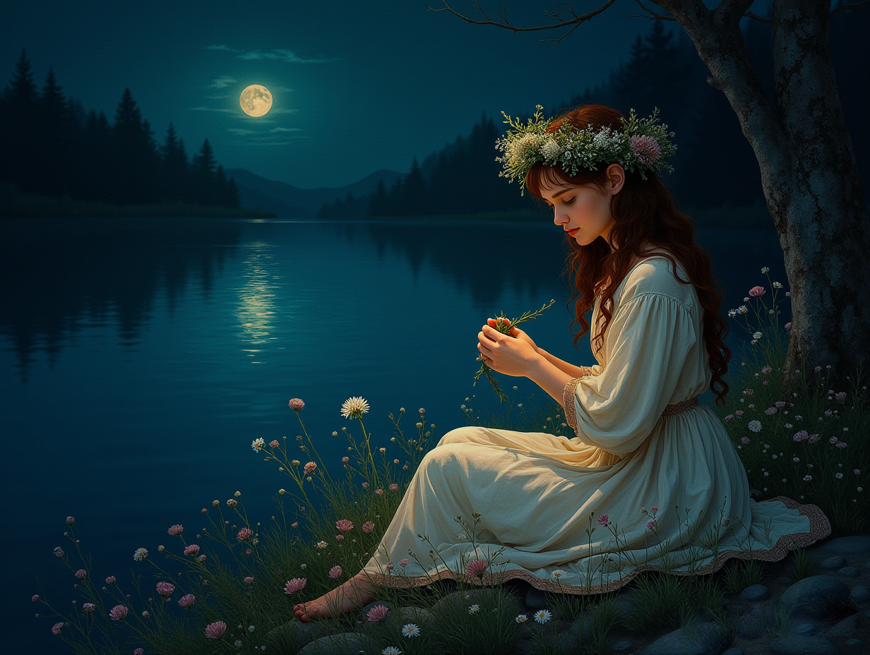 А по языческому чину Плывут венки по лону вод, Горят и светят их лучины На этот звёздный небосвод.
