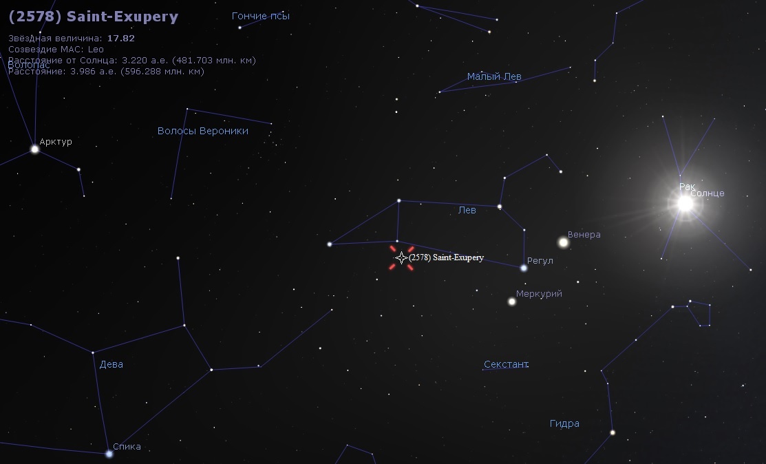 Сегодня грустный день - 80 лет с тех пор, как ушёл в свой последний полёт Антуан де Сент-Экзюпери... Ушёл навстречу своему звёздному герою... Планета Сент-Экса сегодня недалека от Солнца, в созвездии Лев...
